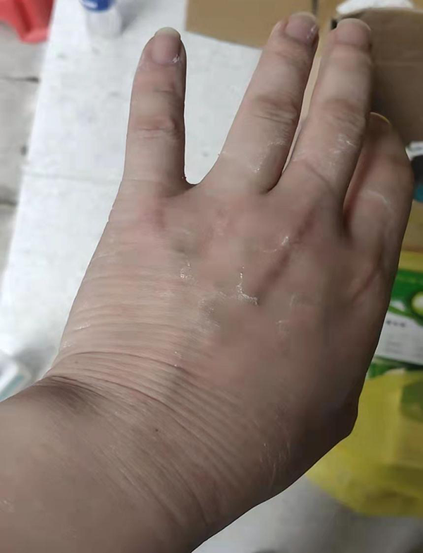(以上为公司志愿者脱下防疫手套的特写,深感抗疫的不易)