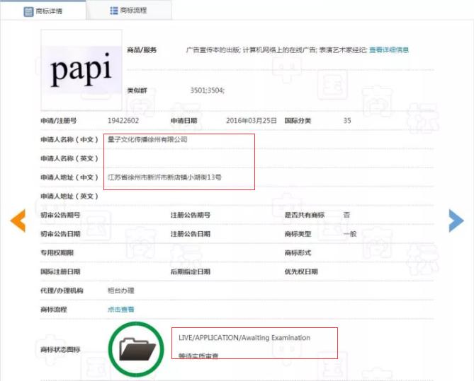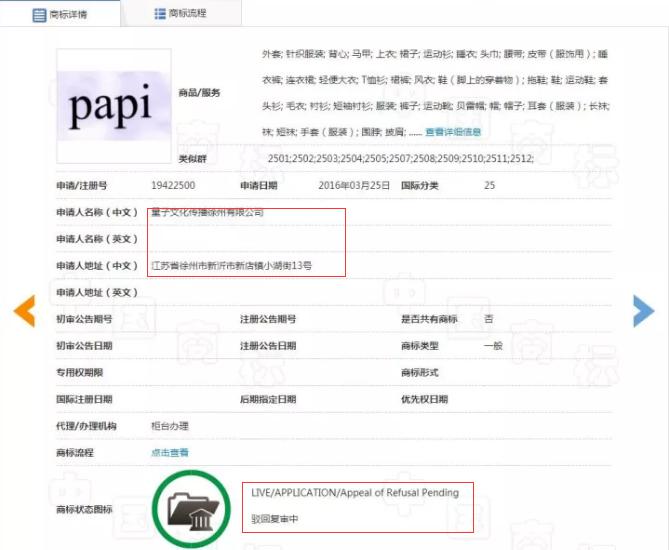 1、公司要注册的商标由网红名称“papi”得来,是公司经“中国第一网红”papi酱授权申请注册的,papi酱商标经姜逸磊多年的广泛良好使用,已经具有了极高的显著性和知名度,papi酱和姜逸磊早已建立了唯一的对应关系。